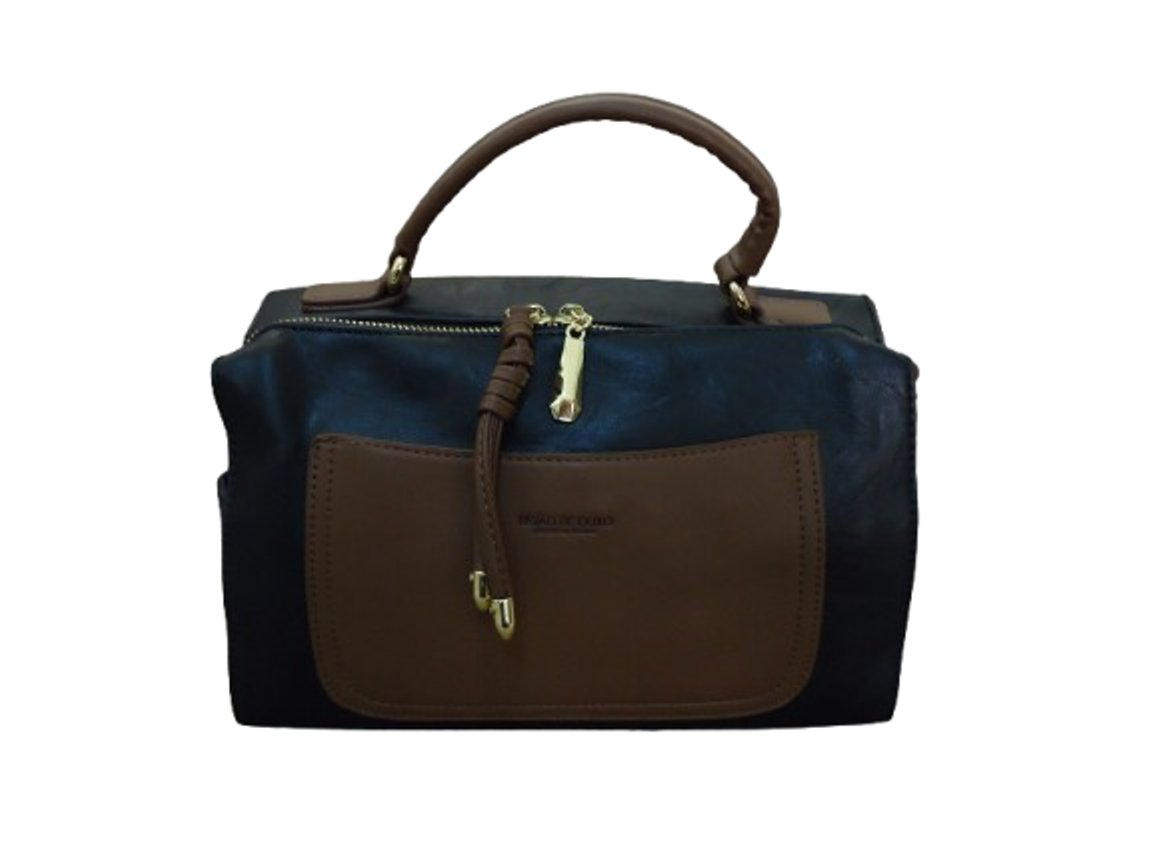 Bolsa PRETA com detalhes em café, alça fixa de mão e alça transversal, zípers de abertura e zíper externo traseiro, interno toda forrada cetim com divisões e zíper.
